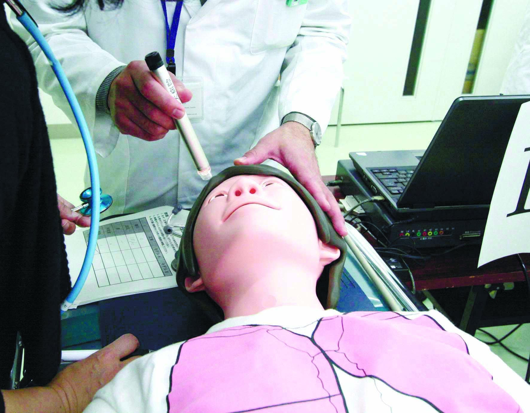 薬剤師が病棟活動するには、フィジカルアセスメントの実施とバイタルサインの把握が必要と考えたのです。そこで薬剤部は、看護師など医療人の教育に使用するスキルラボセンターを活用した実践的なトレーニングを開始しました。特に高性能総合シミュレータ「SinMan」を活用しての投薬シミュレーション研修を実現しました。